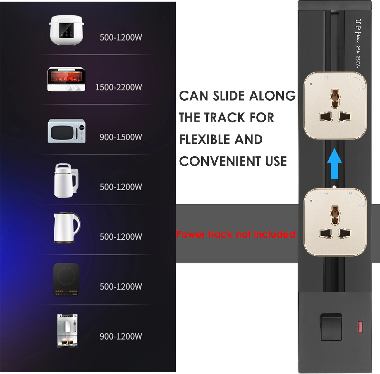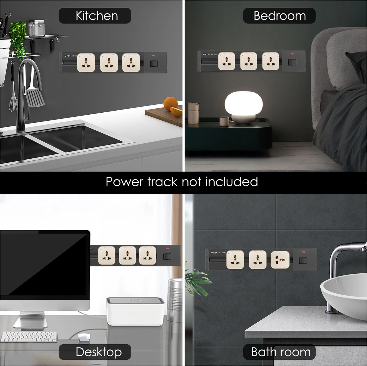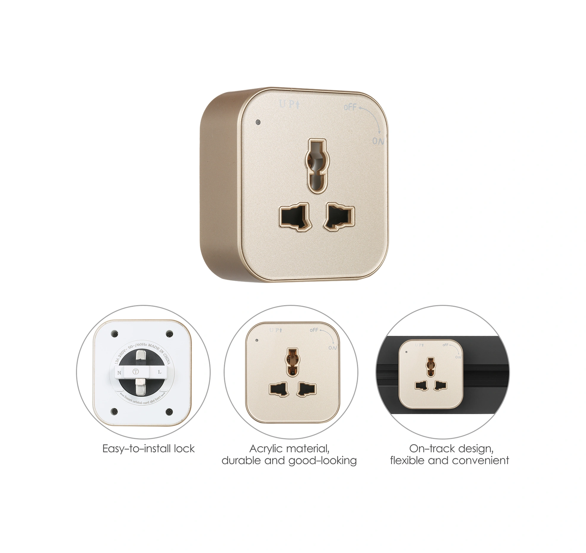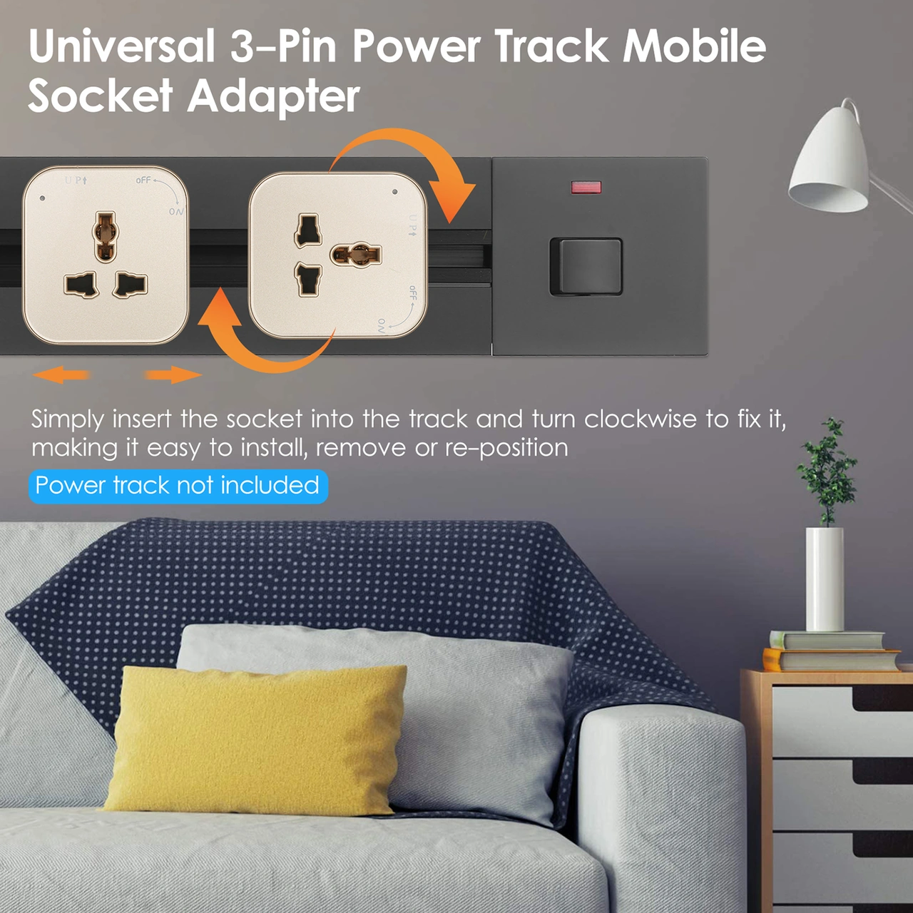 Youtek Altın Renkli Akrilik Uçaklı Tabanlı 3-pin Evrensel Tak Adaptörü - Kaydırılabilir Elektrik Rayı Uyumlu, Kolay Kurulum, Ev/ofis Kullanıma Uygun Altın