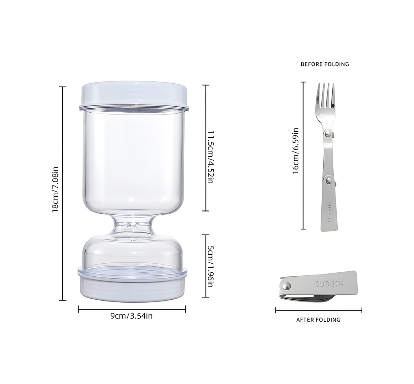Youtek Beyaz Plastik 800ml Gıda Depolama Kavanozu, Islak-kuru Ayrımı, Görünür Kapak, Katlanabilir Çatal, Ev Ofis Mutfak Tuzlama Salata Sosu İçin Beyaz