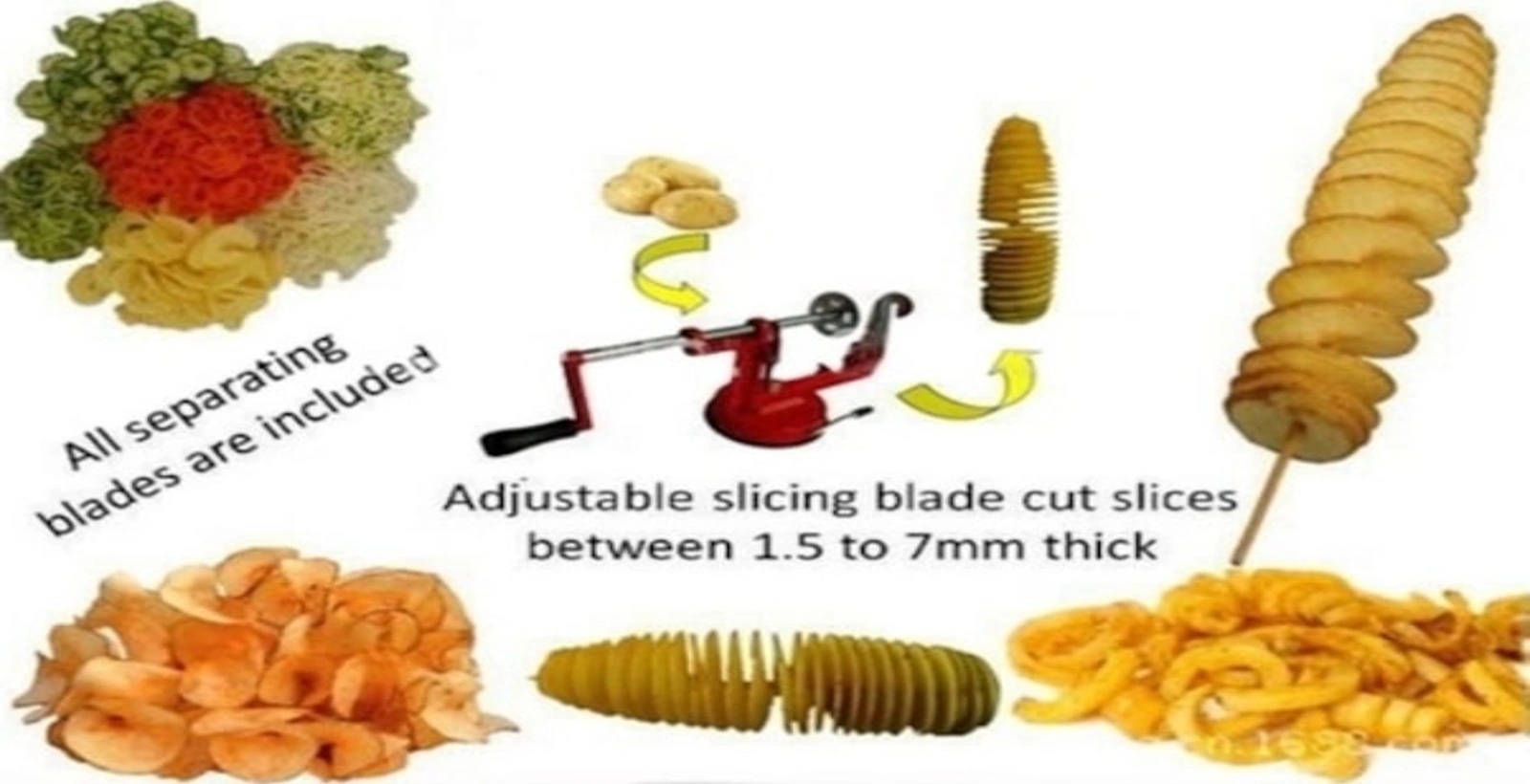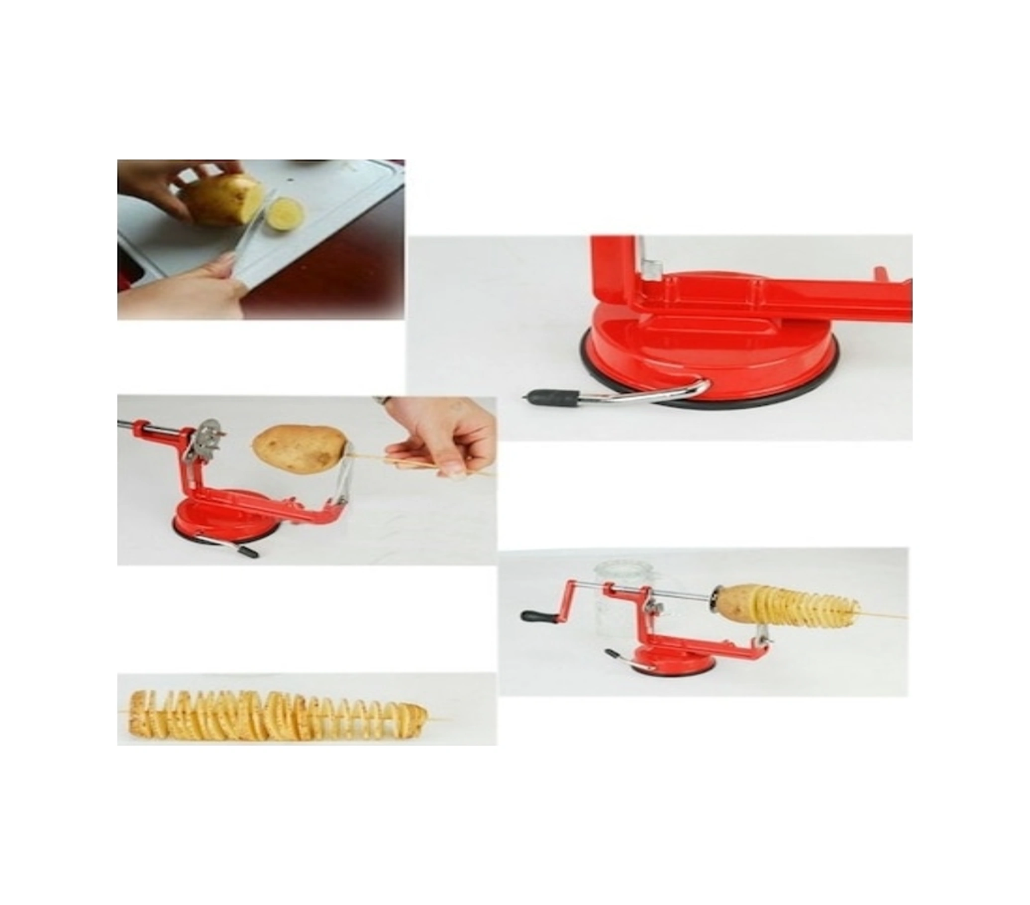 Youtek El İle Devirli Patates Dilimleme Makinesi, Paslanmaz Çelik Bıçaklı Sebze-meyve Spiral Kesici, Alüminyum Gövde, Sürekli Kullanıma Dayanıklı Kırmızı