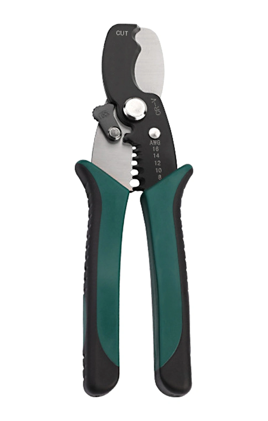 Youtek Elektrikçi İçin Çok İşlevli Tel Soyucu Ve Kesici - Yeşil + Siyah, 1.29-3.26mm Aralığı, 65 Mangan Çeliği