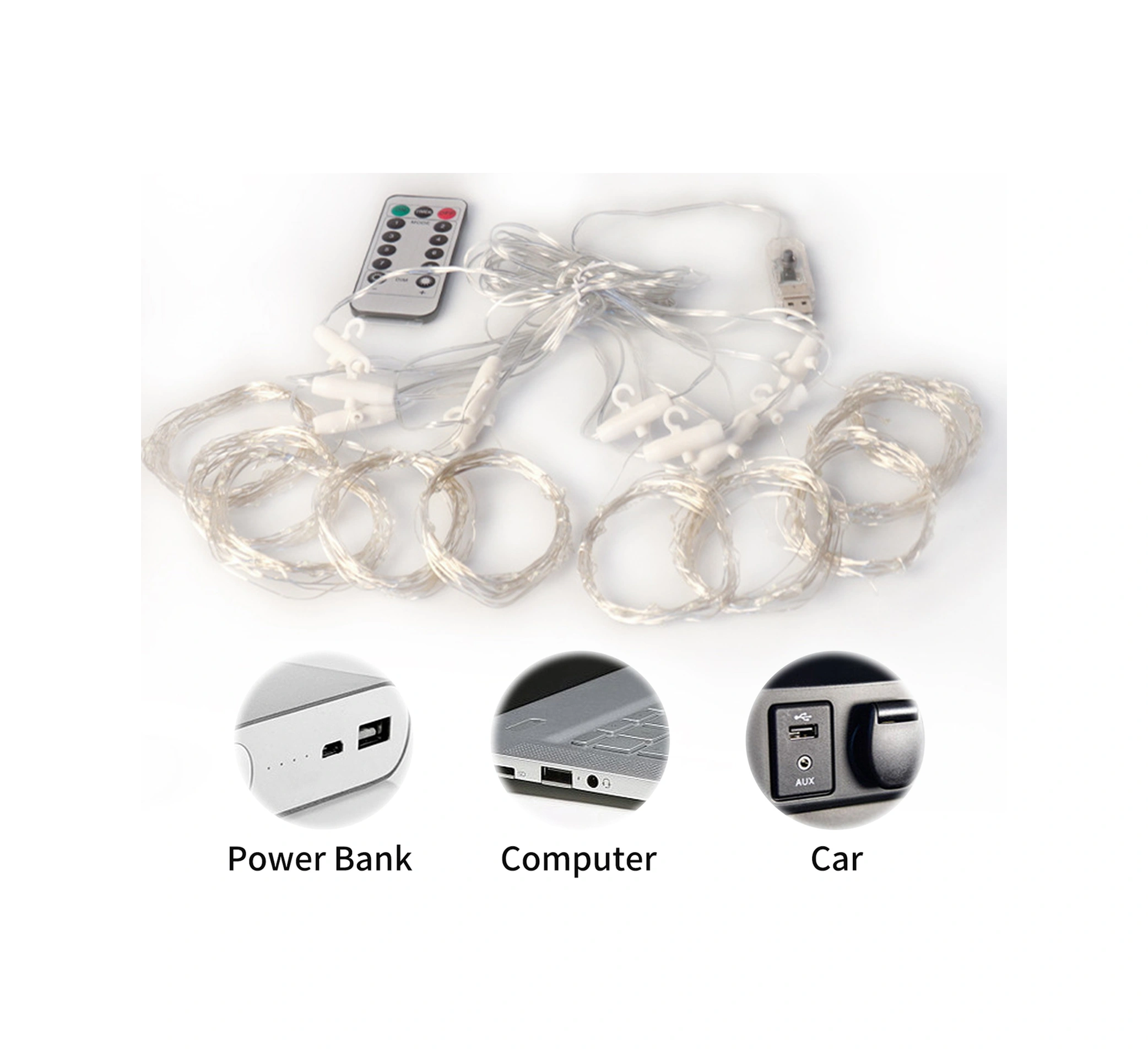 Beyaz Perde Peri Işıkları Dize Işık Dekorasyon Işıkları Usb Powered 3x1m/3x2m/3x3m 3m 1m Diğer