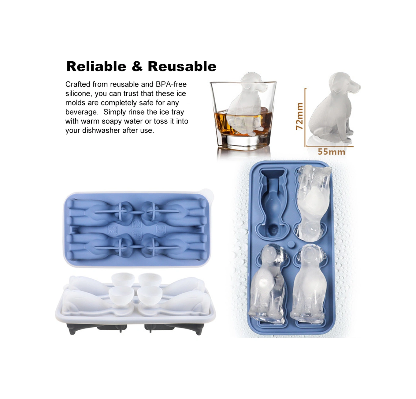 Youtek Mavi Silikon Buz Kalıbı - 4 Adet 3d Labrador Şekilli Buz Küpü, Kokteyller Ve İçecekler İçin, Yıkama Kolay, Yineleyebilir Çok Renkli