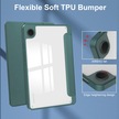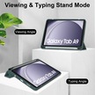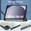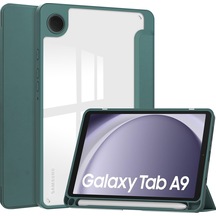 Youtek Samsung Galaxy Tab A9 8.7" Kılıf - A9 Plus 11" Uyumlu, Kalem Bölmeli, Uyandırma Fonksiyonlu, Üç Katlı Şeffaf Koruyucu Kılıf Koyu Yeşil
