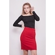 Yüksek Bel Diz Üstü Kumaş Kalem Etek-Kırmızı