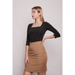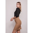 Yüksek Bel Diz Üstü Şık Kumaş Kalem Etek-Camel