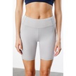 Yüksek Bel Toparlayıcı Çift Cepli Biker Şort Kısa Spor Tayt Kısa-tayt Gri
