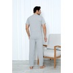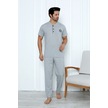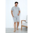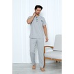 Yüksek Kaliteli Pamuk Penye: Erkekler İçin Mevsimlik 3 Parça Kısa Kollu Pijama Takımı Babalar Günü Hediyesi Gri