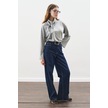 Kadın Uzun Kollu V Yakalı Çapraz Geçmeli Detaylı Ithal Krep Bluz Lacivert