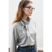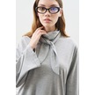 Yüksek Yaka Bağlamalı Bluz Gri Melanj Gri Melanj