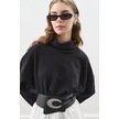 Yüksek Yakalı Oversıze Sweatshırt Siyah Siyah