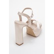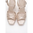Yulia Bej Saten Çapraz Bantlı Kadın Platform Topuklu Ayakkabı Bej