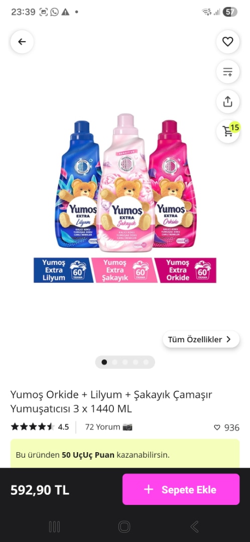 Yumoş Orkide + Lilyum + Şakayık Çamaşır Yumuşatıcısı 3 x 1440 ML