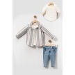 Yumuşak Doku Pamuklu Çizgi Detay Gömlekli Erkek Bebek Takım Mavi