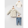 Yumuşak Doku Pamuklu Çizgi Detay Gömlekli Erkek Bebek Takım Yesil