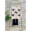Yumuşak Pamuklu Kumaş Tül Fiyonk Aplikeli Sweatshirt Ve Fitilli İspanyol Paça Tayt Alt Üst Takım Taş