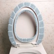 Yumuşak Tuvalet Oturağı Minderi 2 Parça Set Bej Mavi Triko Örgü B Diğer
