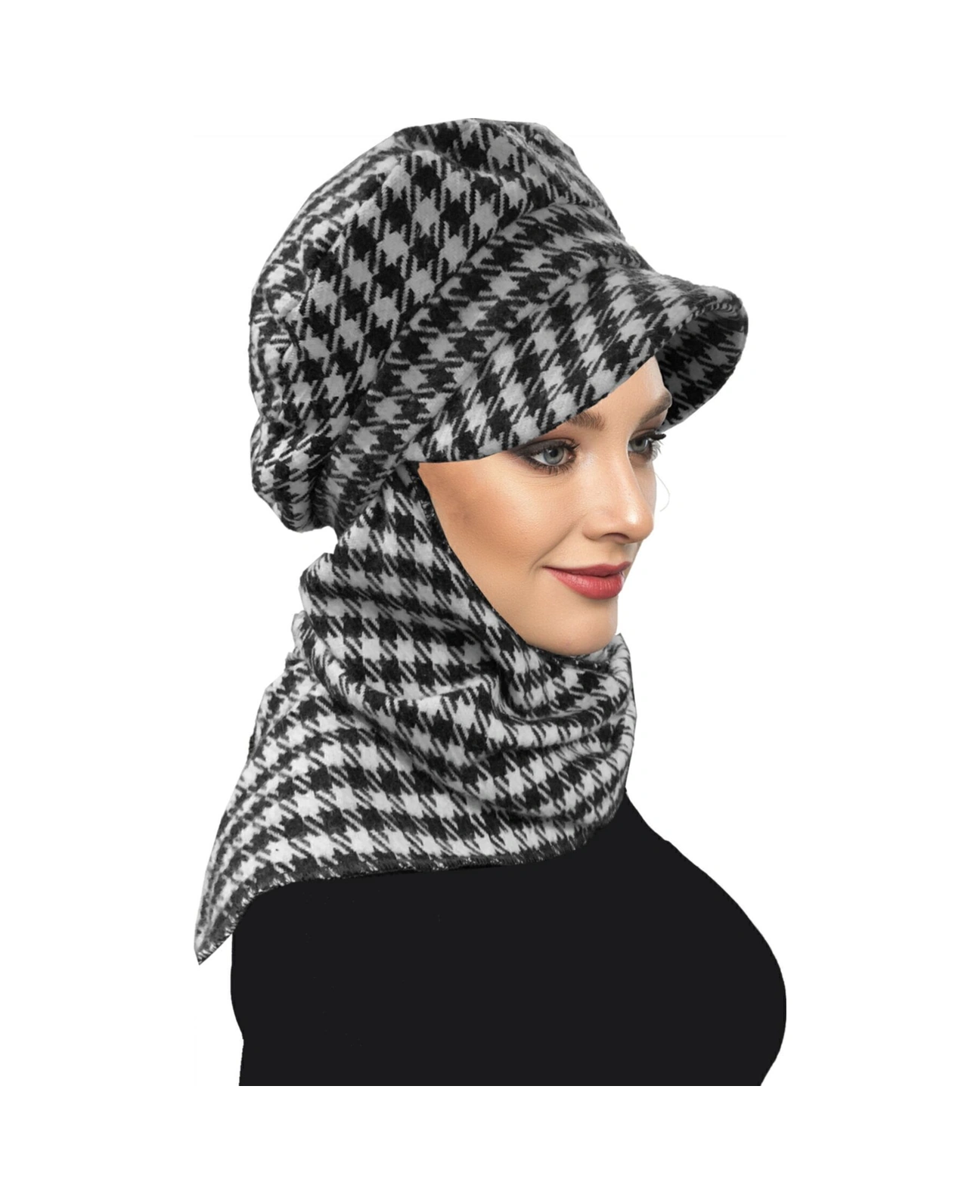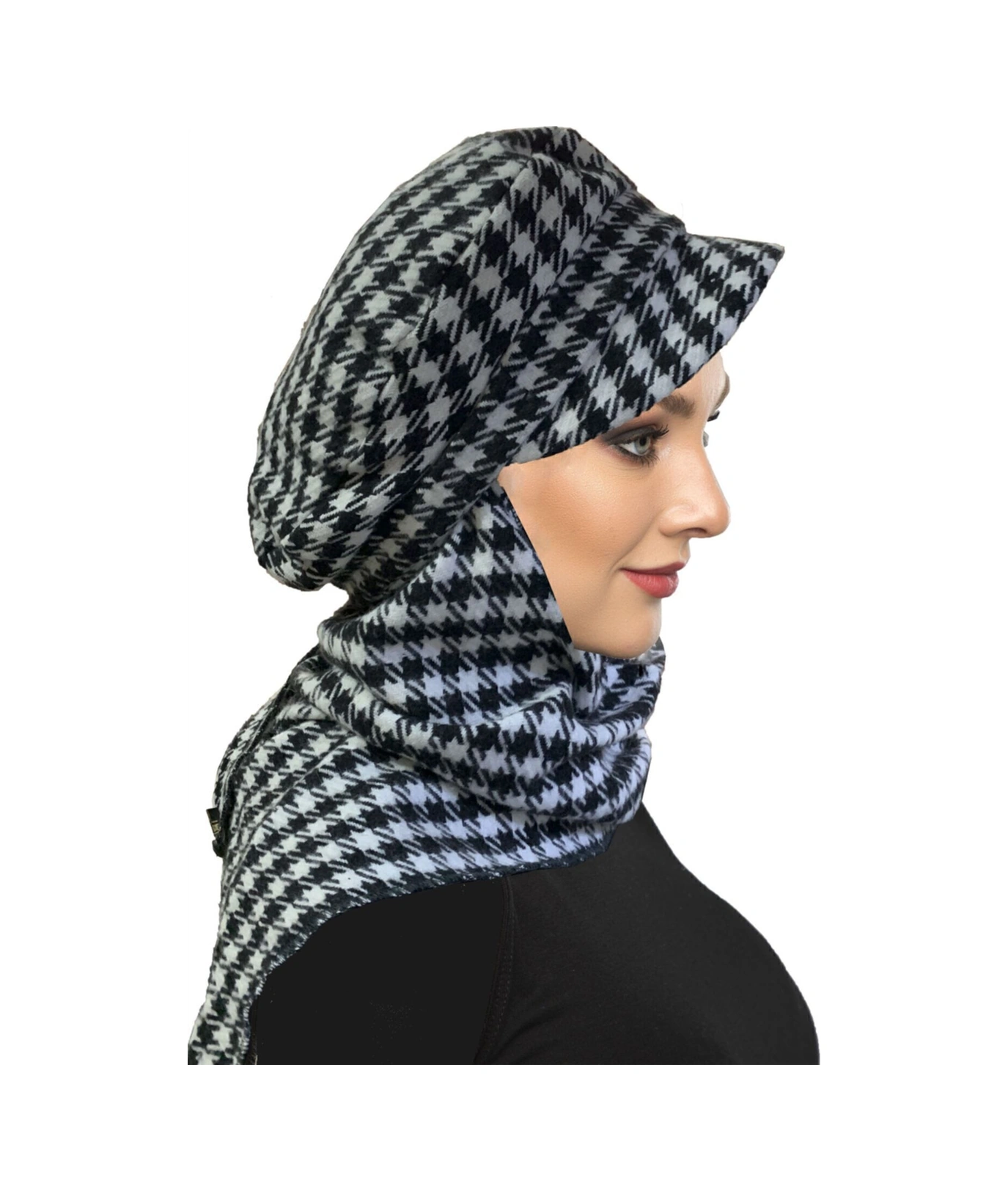 Yün Kasket Şapka Atkılı Kazayağı Desenli Hazır Türban Tesettür Bone Kazayağı Desenli