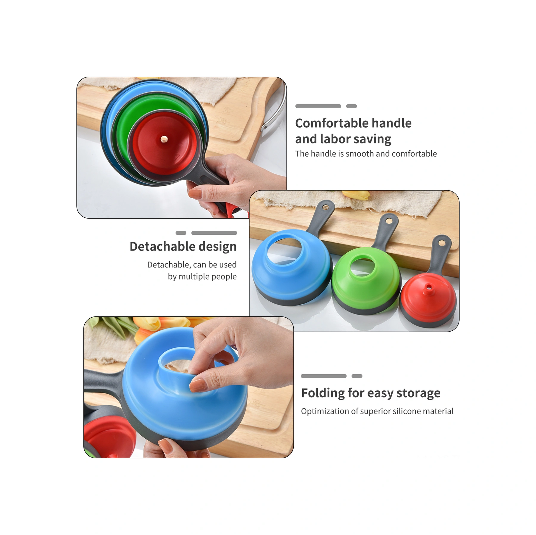 Yunboo 3'lü Silikon Katlanabilir Lehim Huni Seti - Geniş Açık, Çabuk Saklanabilir, Ev Fırını Ve Mutfak Araçları Çok Renkli