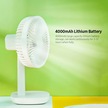 Yunboo 6.5" Masif Hava Akışlı Şarjlı Titreşimli Masa Üstü Fanı - 3 Hız Ayarı Ve 4000mah Pil Beyaz
