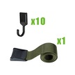 Yunboo Doğa Kampı Ağaç Kanca Seti - 1.5m Asker Yeşili Örgü Kayış + 10 Adet Dayanıklı Kanca - Kolay Kurulum Outdoor Çanta Aletleri Asma Gereci Haki
