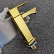 Yunboo Ev Banyo Lavabo Tek Soğuk Su Kranı, Altın Kaplama Dörtgen Tipi, Dayanıklı Malzeme, Ev Kullanıma Uygun Altın
