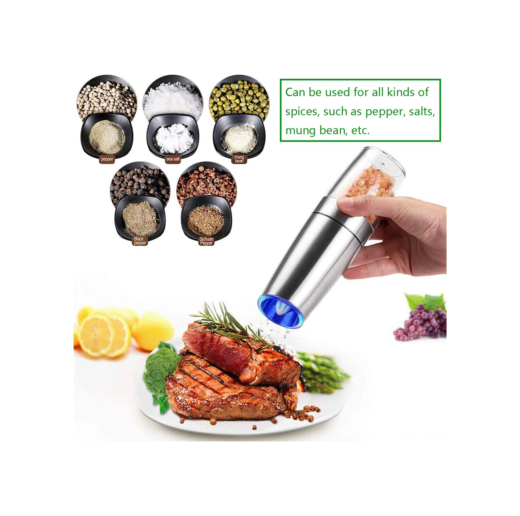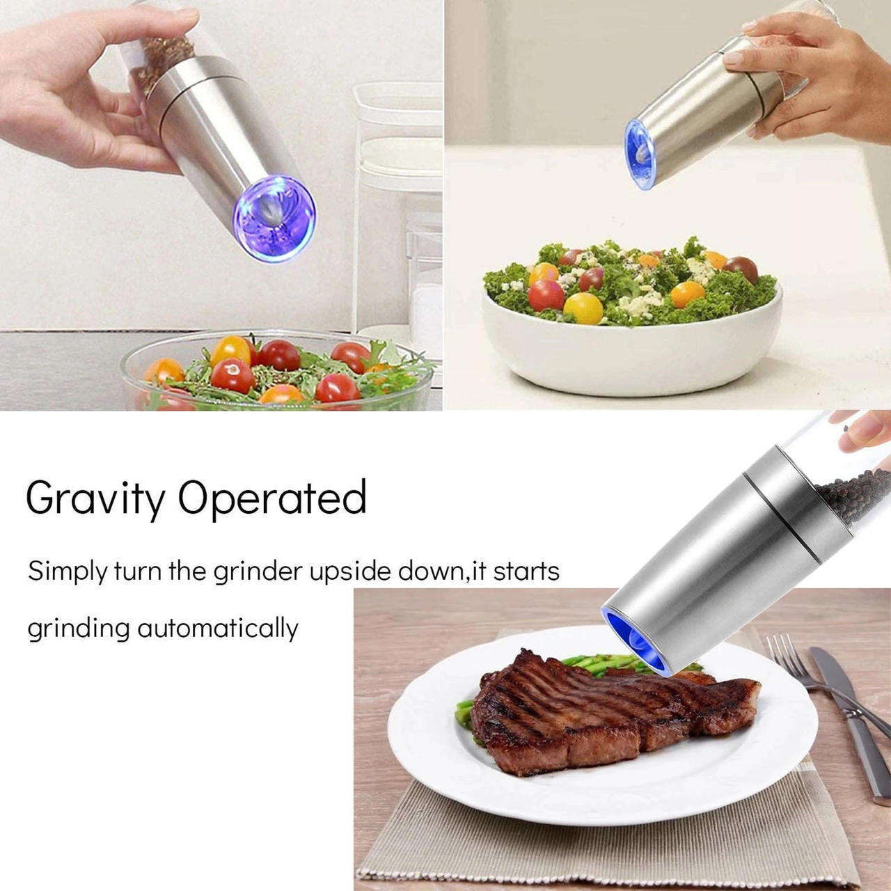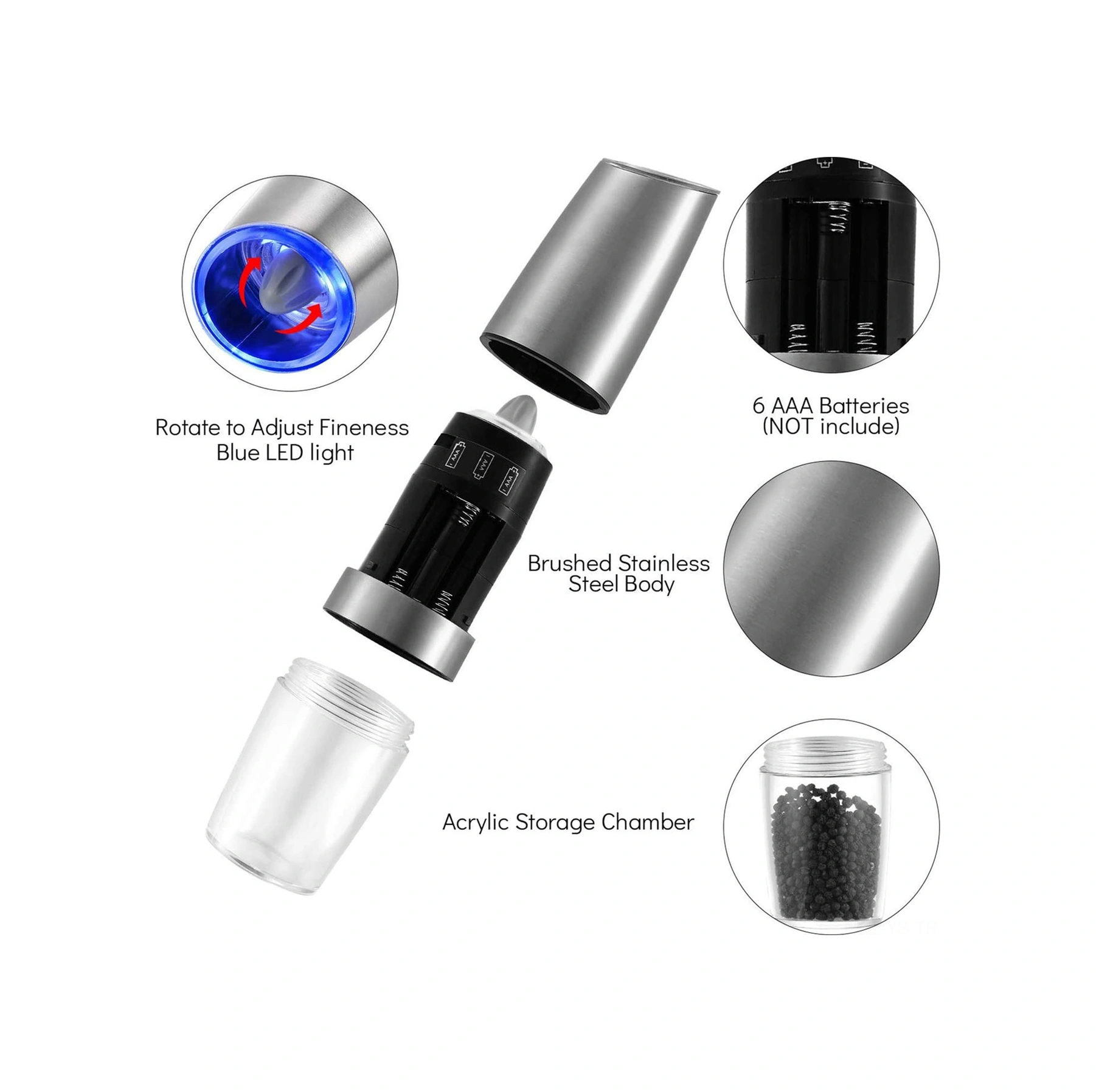 Yunboo Ev Elektrikli Biber Değirmeni, Çekim Sensörlü, Çelik Paslanmaz, Ayarlandırabilir Değirme Kalınlığı, Mavi Led Işık, Tek Elle Kullanım Pil Dahil Değil Gümüş