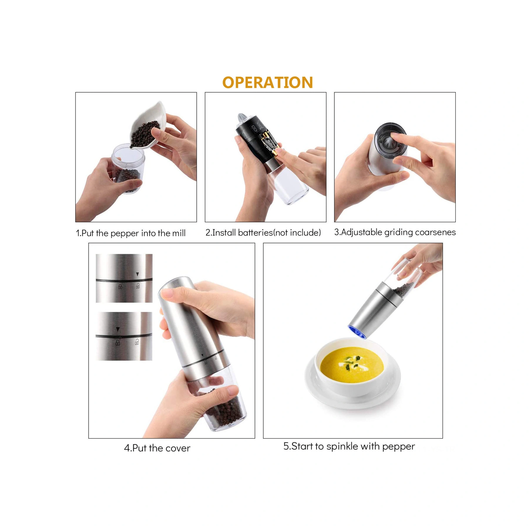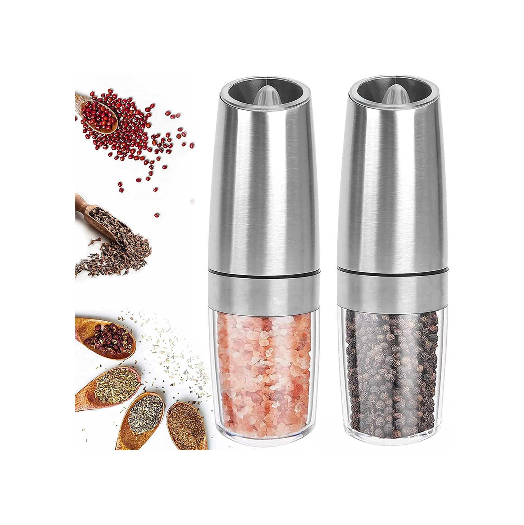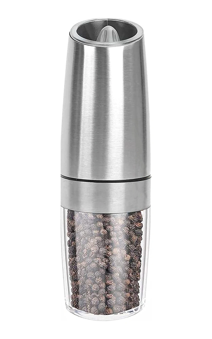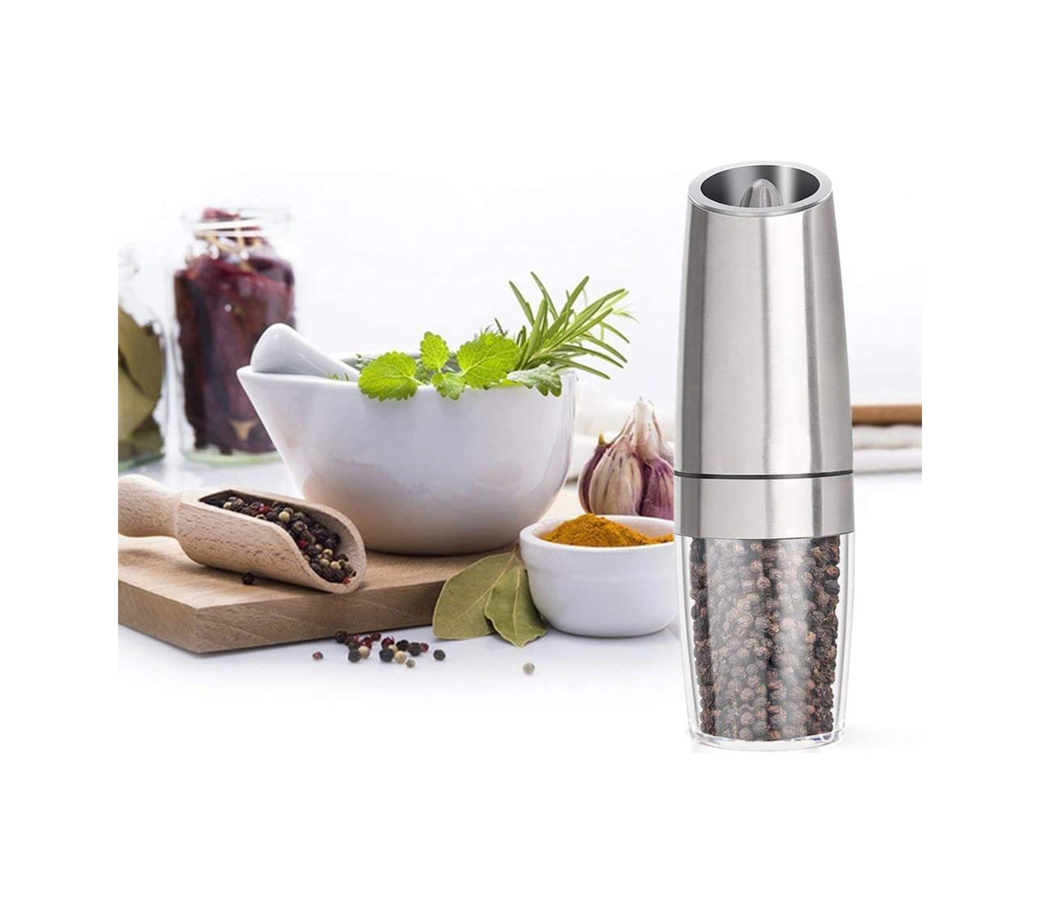 Yunboo Ev Elektrikli Biber Değirmeni, Çekim Sensörlü, Çelik Paslanmaz, Ayarlandırabilir Değirme Kalınlığı, Mavi Led Işık, Tek Elle Kullanım Pil Dahil Değil Gümüş
