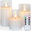 Yunboo Ev Ve Düğün İçin Uzaktan Kumandalı Cam Mum Lambası - Ateşsiz, 10 Tuşlu, Saf Beyaz 3'lü Set Kumanda Dahil
