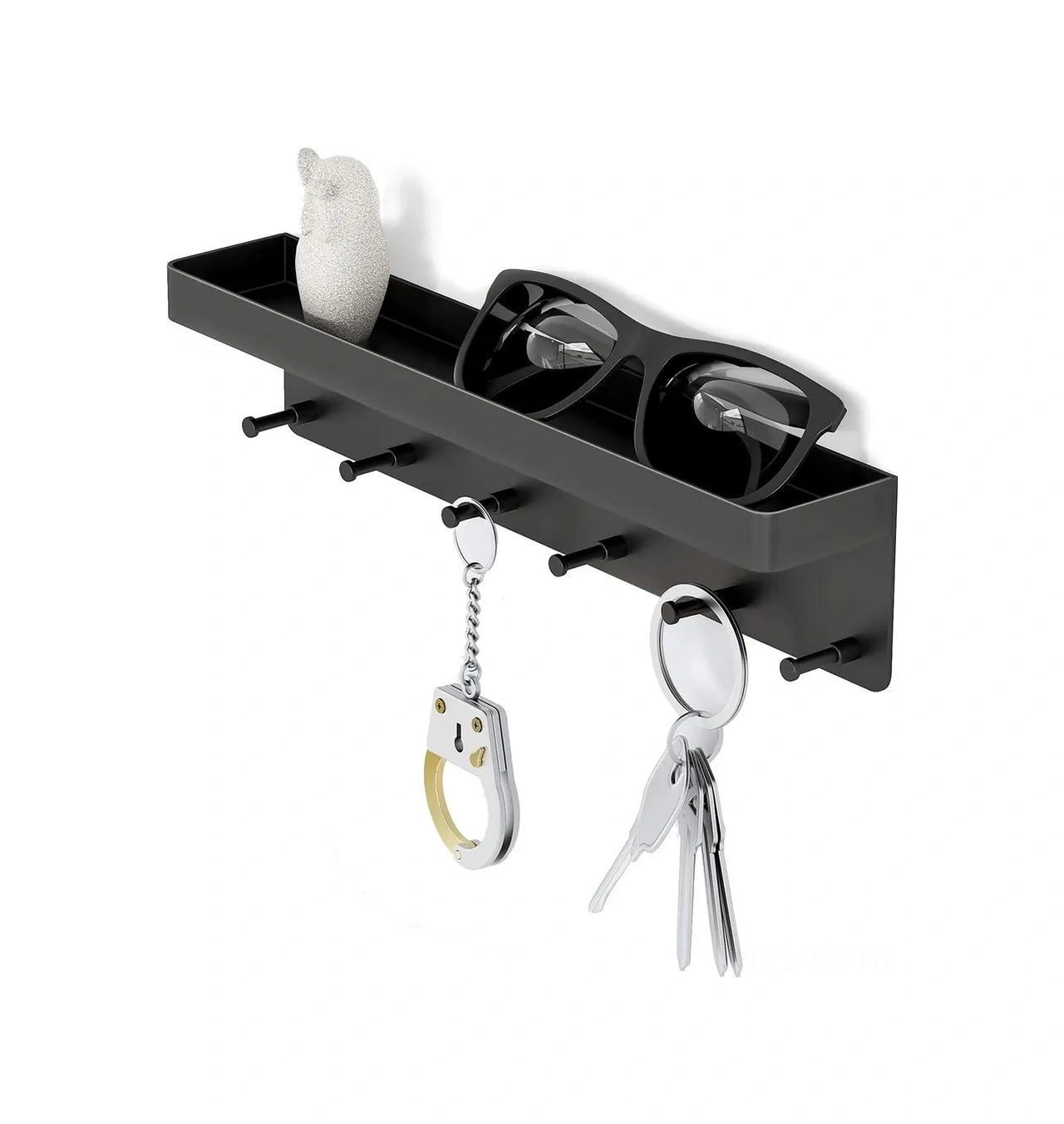 Konesam Mat Siyah Duvar Organizörü - 6 Çelik Kanca İle Anahtar, Gözlük, Cüzdan Ve Küçük Eşya Saklama - Ev Dekorasyonu İçin Dayanıklı Metal Tasarım Siyah