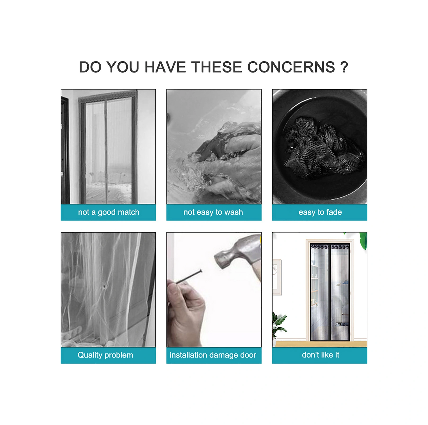 Yunboo Siyah Manyetik Yumuşak Dokuma Moskit Korumalı Sessiz Kapı Perdesi - 90x220 Cm Poliester Malzeme Siyah