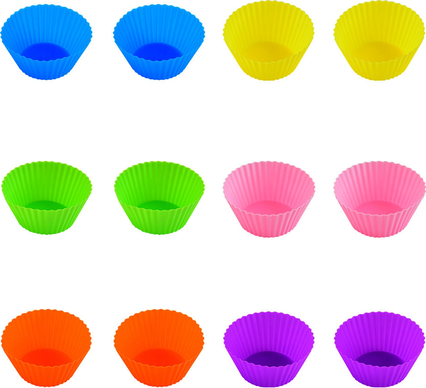 Yunboo Yemek Kalitesi Silikon 12 Adet 6 Renkli Muffin Kasesi - Fırın Uygun, Tekrarlı Kullanım, Anti Yapışkan Pastry Ve Cupcake Kalıbı Çok Renkli