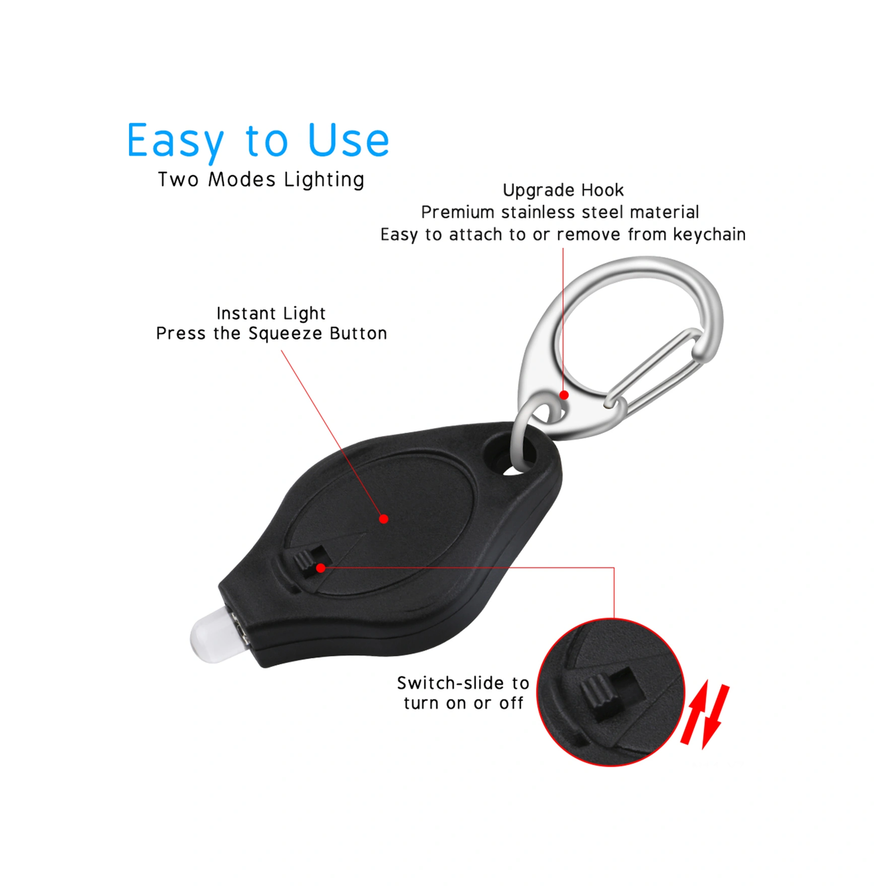 Yuntech01 10 Adet Kırmızı Anahtar Zinciri Feneri, Beyaz Led Işık, Basma/kaydırmalı Anahtar, Cr2032 Pil Dahil, 60x22x8mm Boyut Kırmızı