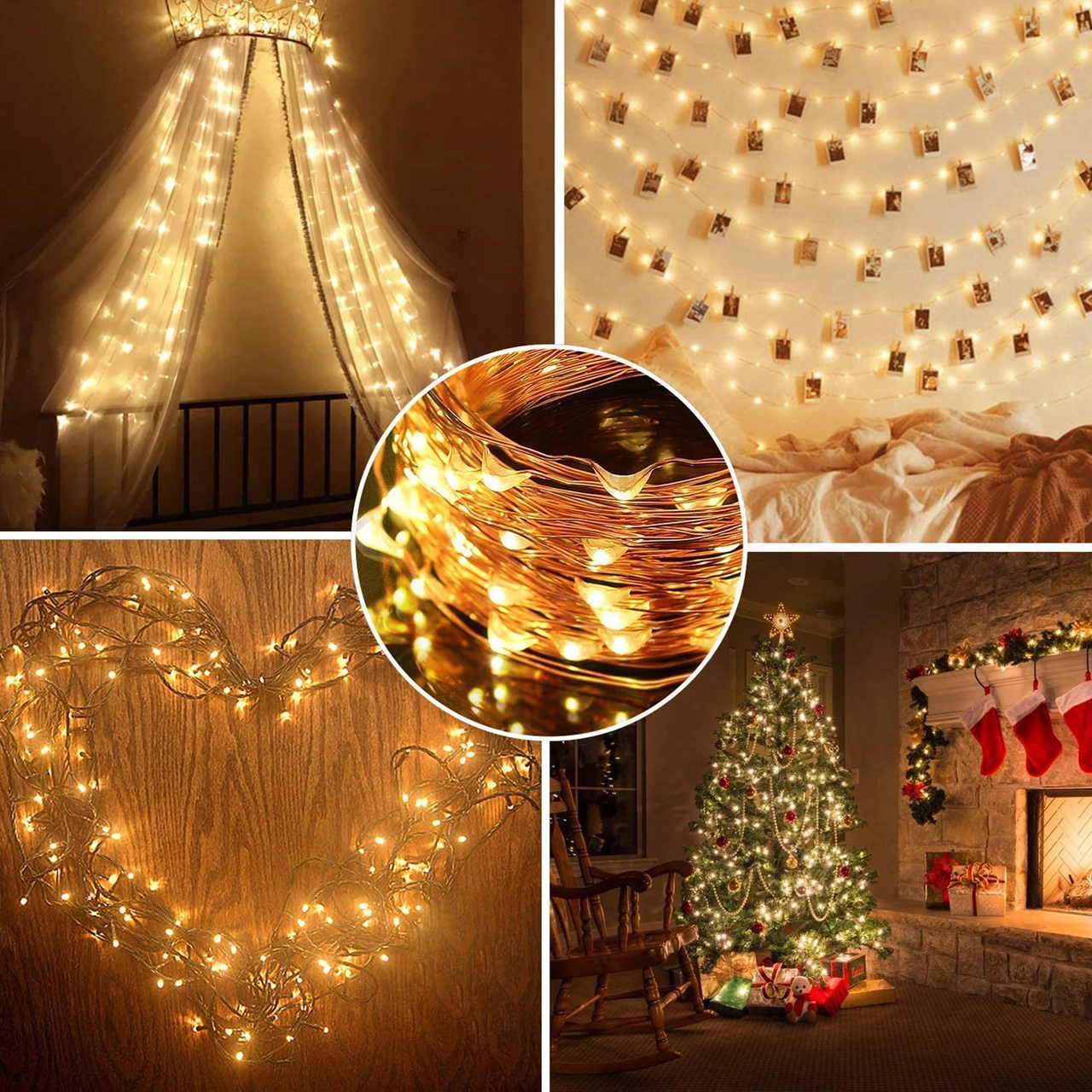 Yuntech01 10m 100 Led Bakır Tel Işıklı Zincir, Usb Beslemeli, 8 Modlu, Isınma Beyazı, Su Geçirmez, Kumandalı Odalar İçin Dekoratif Aydınlatma Pil Dahil Değil Çok Renkli
