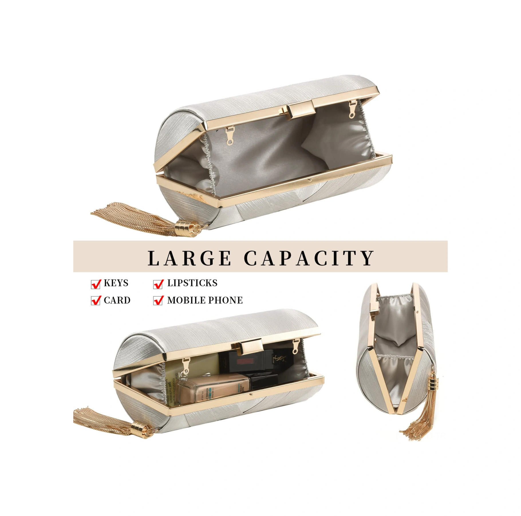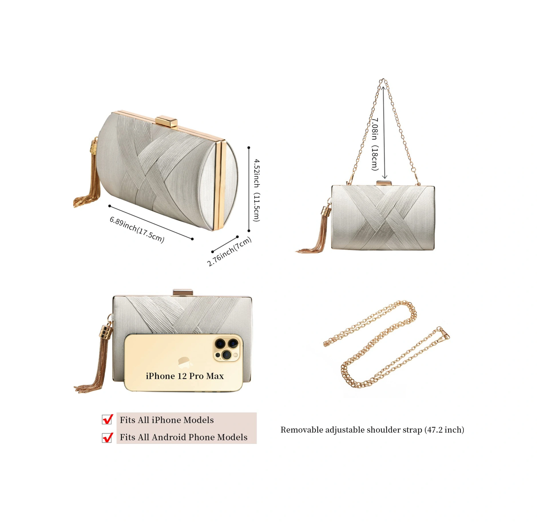 Yuntech01 Renkli İmitasyon İpek Askılı El Çantası - Metal Kanca Kapatma, 17.5x7x11.5cm, 0.41kg, 2 Metal Zincir Uzun & Kısa Çok Renkli