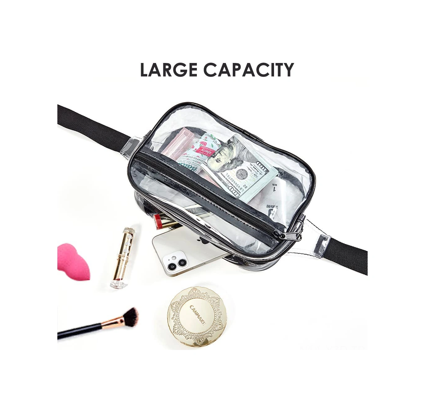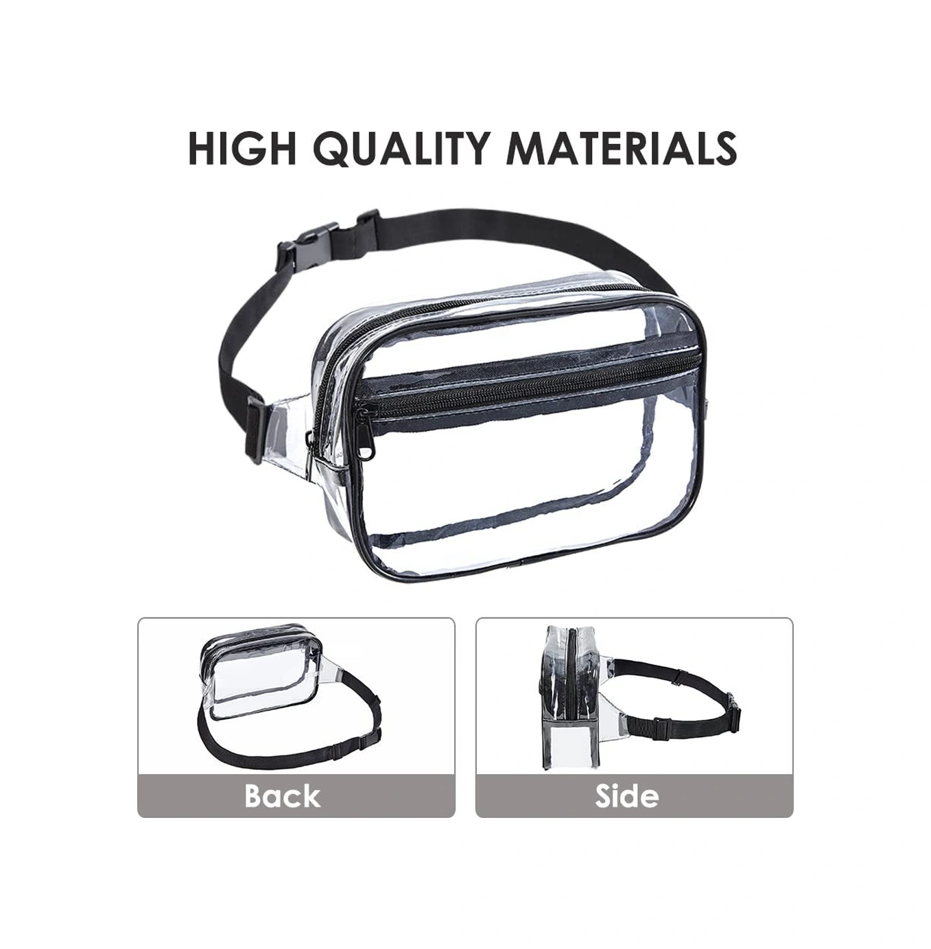 Yuntech01 Siyah Şeffaf Pvc Spor Bel Çantası - Stadyum Onaylı, Su Geçirmez, Ayarlanabilir Kemer, Outdoor Etkinlikler İçin Çabuk Erişimli Depolama Siyah