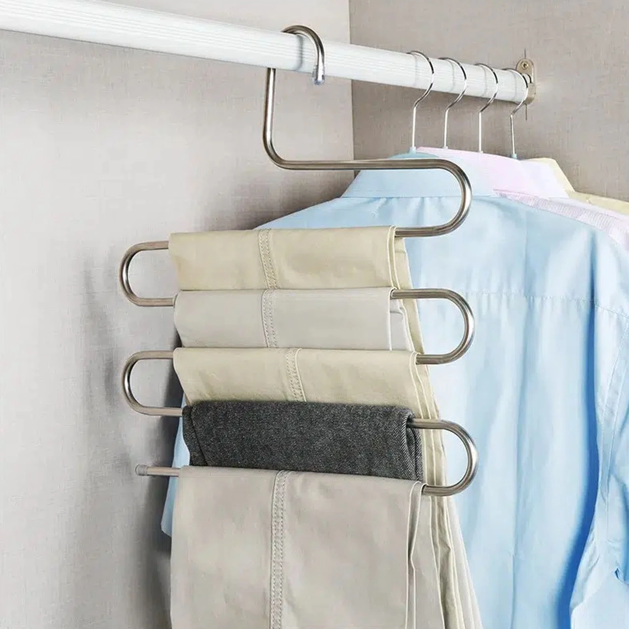 Yuntech01 Stainless Steel S-şekilli Çok Amaçlı Giyim Rafı - 5 Çift Pantolon, Eşarp, Kemer Saklama - Boşluk Tasarrufu, Dayanıklı Ve Pas Koruma Gümüş
