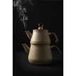 Yunusoğlu Home Granit Kaplama Gold Kulplu Cam Kapak Çaydanlık Krem Krem