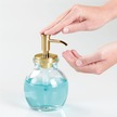 Yuvarlak Cam Sıvı Sabunluk Sarı Pirinc Pompalı 10x10x16cm 424ml