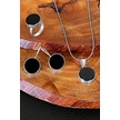 Yuvarlak Siyah Oniks Taşlı Gümüş Kadın Takım Yüzük Küpe Kolye Ucu