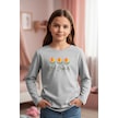 Yuvarlak Yaka Çiçek Baskı Detaylı Kız Çocuk Sweatshirt Gri