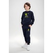 Yuvarlak Yaka Emoji Baskılı Erkek Çocuk Eşofman Takımı Lacivert