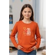 Yuvarlak Yaka Girls Baskı Detaylı Kız Çocuk Sweatshirt Turuncu