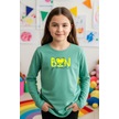 Yuvarlak Yaka Kalp Baskı Detaylı Kız Çocuk Sweatshirt Mint