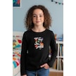 Yuvarlak Yaka Renkli Çiçek Baskılı Kız Çocuk Sweatshirt Siyah