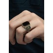 Yüzük Sanatı Oniks Taşlı Harfli 925 Gümüş Erkek Yüzük