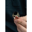 Agakulche Gümüş Erkek Kırmızı Taşlı Damask Desen Yüzük Gümüş