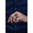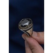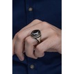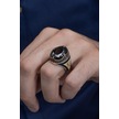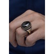 Yüzük Sanatı Oval Siyah Taşlı İsimli Harfli 925 Gümüş Erkek Yüzük