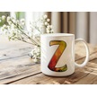 Z Harf Yaprak Renkleri İle Kupa Bardak - Kişiye Özel Alfabe Harfli Bardak - Hediye Beyaz