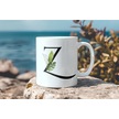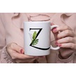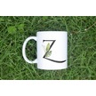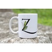 Z Harf Zarif Yaprak Desenli Kupa Bardak - Naturel Sade Alfabe Harfli Bardak - Kişiye Özel Hediye Beyaz