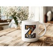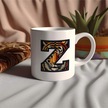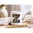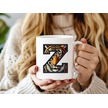 Z Harfi Kaplan Figürlü Nakış Desenli Kupa Bardak - Kişiye Özel Vahşi Hayvan Desenli Kupa - Hediye Beyaz